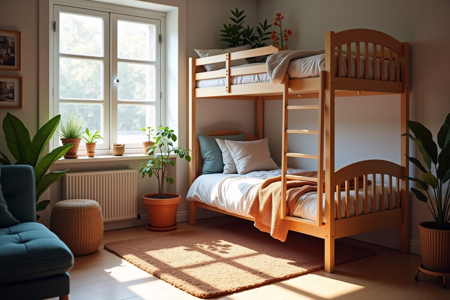 - Vorhänge oder Jalousien: Sie dienen nicht nur als Sichtschutz, sondern können auch die Lichtverhältnisse im Raum beeinflussen. Wähle helle Vorhänge, um das Tageslicht optimal zu nutzen, oder verdunkelnde Vorhänge, um ungestört zu schlafen.